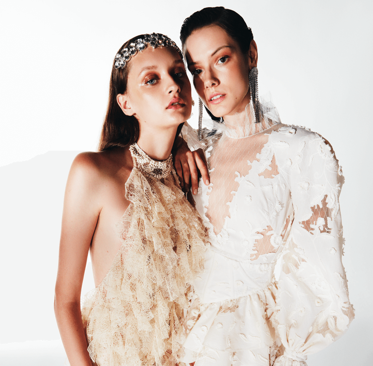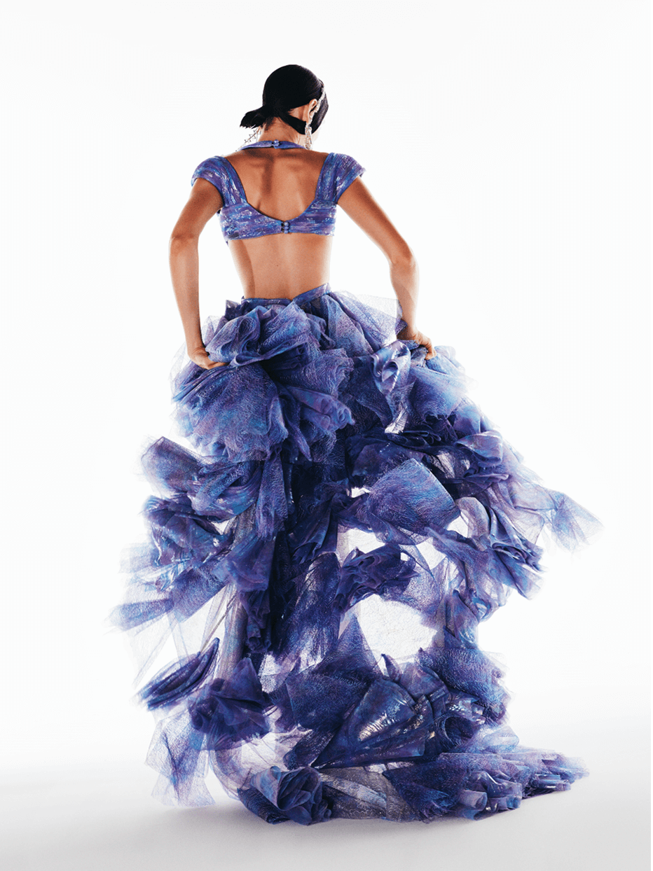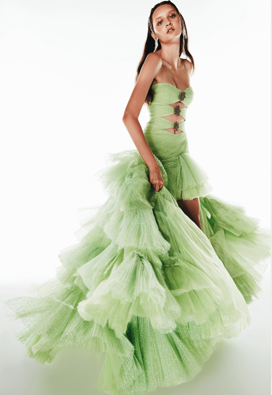 Inspired by the legend of the Crystal Lady—an enchanting figure of strength and grace—this collection channels the magic of moonlit winter nights. Icy silks, sheer tulles, and crystal embellishments evoke a quiet opulence, blending fragility with resilience. Crystal Dame celebrates timeless design, where elegance whispers and strength lies beneath the surface.