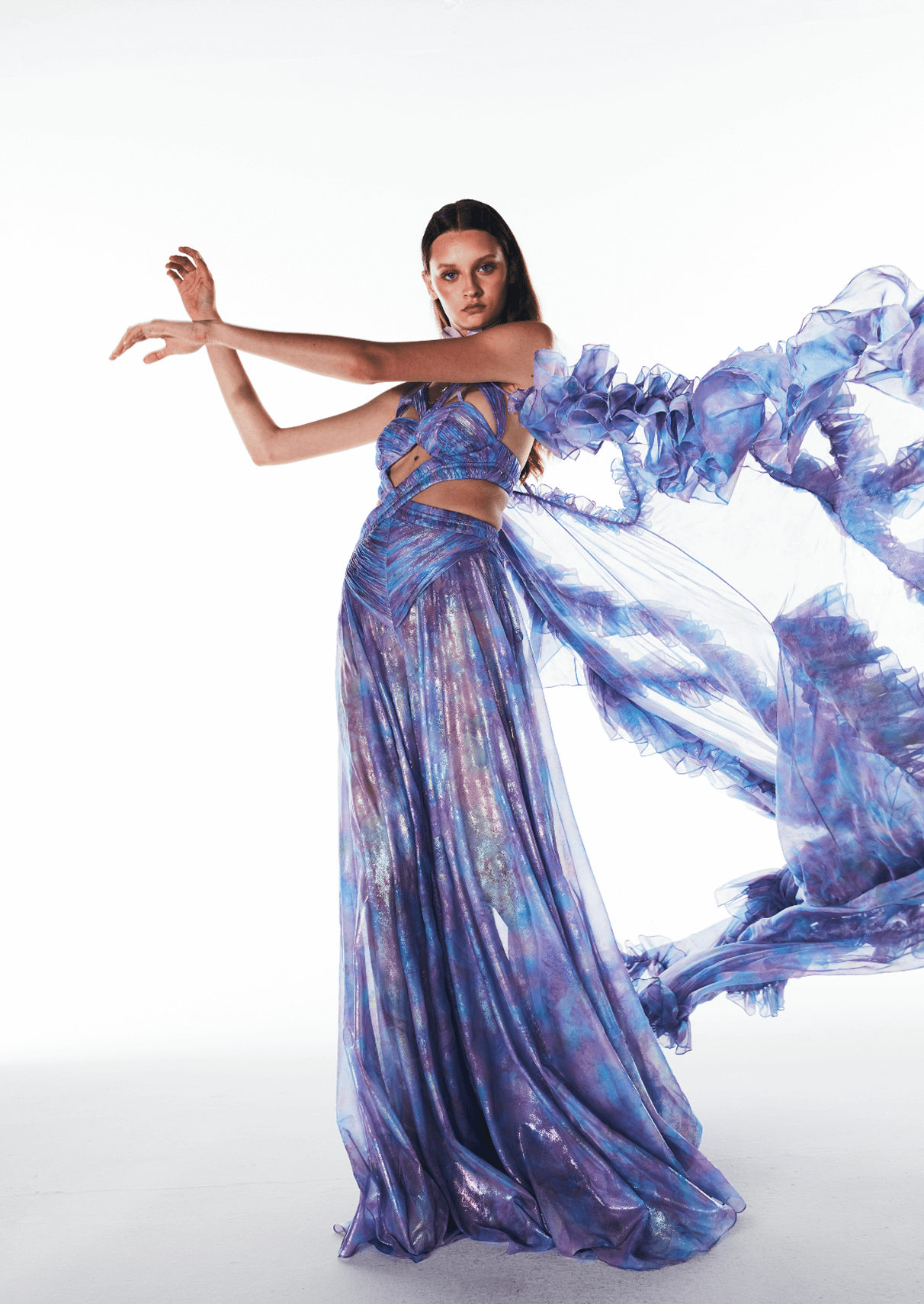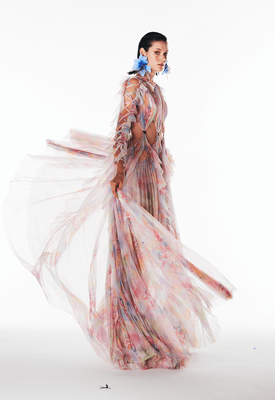 Inspired by the legend of the Crystal Lady—an enchanting figure of strength and grace—this collection channels the magic of moonlit winter nights. Icy silks, sheer tulles, and crystal embellishments evoke a quiet opulence, blending fragility with resilience. Crystal Dame celebrates timeless design, where elegance whispers and strength lies beneath the surface.