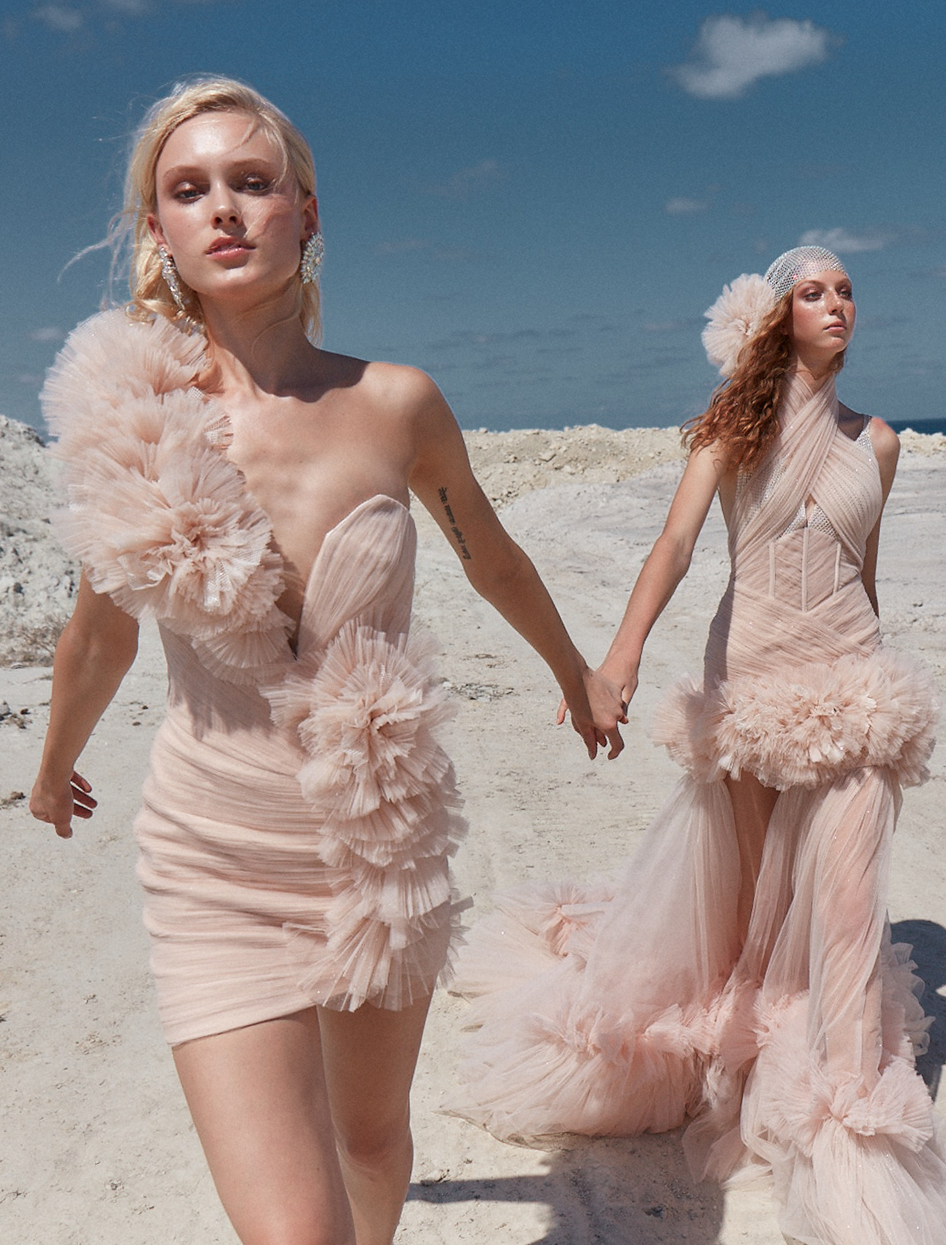 Inspired by the legend of the Crystal Lady—an enchanting figure of strength and grace—this collection channels the magic of moonlit winter nights. Icy silks, sheer tulles, and crystal embellishments evoke a quiet opulence, blending fragility with resilience. Crystal Dame celebrates timeless design, where elegance whispers and strength lies beneath the surface.