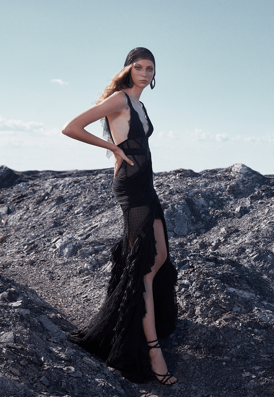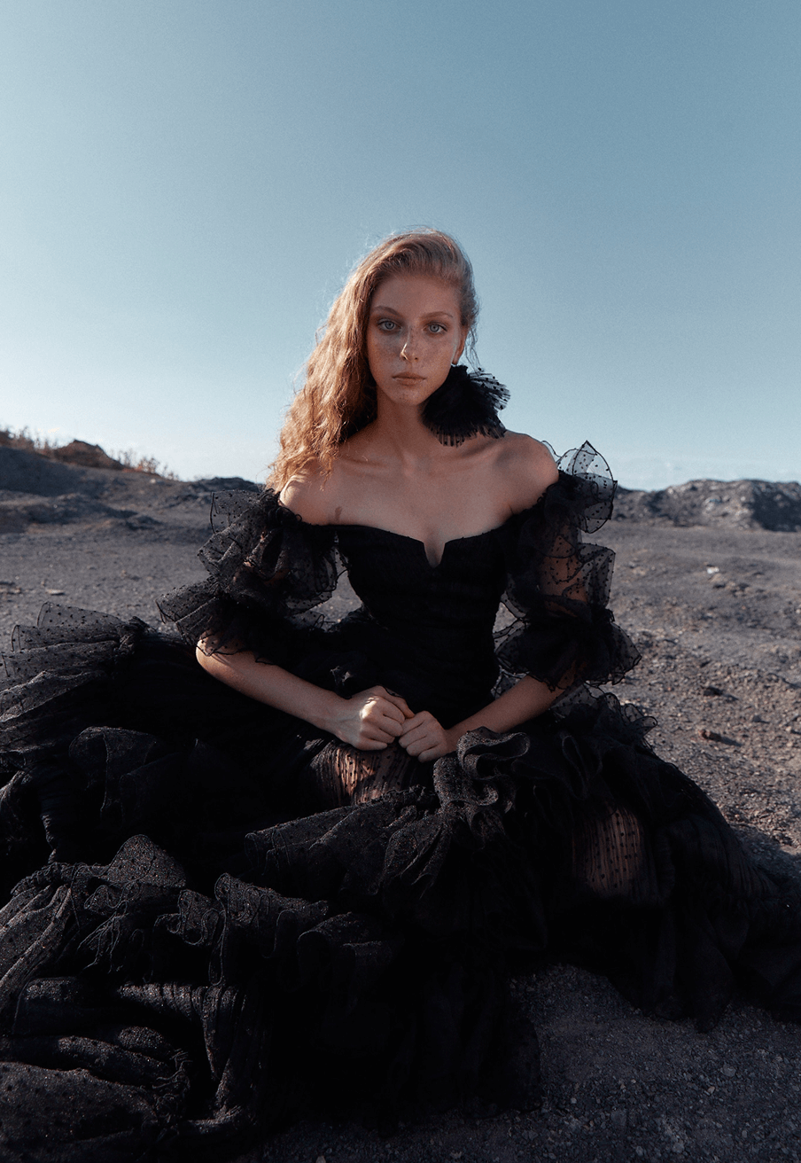 Inspired by the legend of the Crystal Lady—an enchanting figure of strength and grace—this collection channels the magic of moonlit winter nights. Icy silks, sheer tulles, and crystal embellishments evoke a quiet opulence, blending fragility with resilience. Crystal Dame celebrates timeless design, where elegance whispers and strength lies beneath the surface.