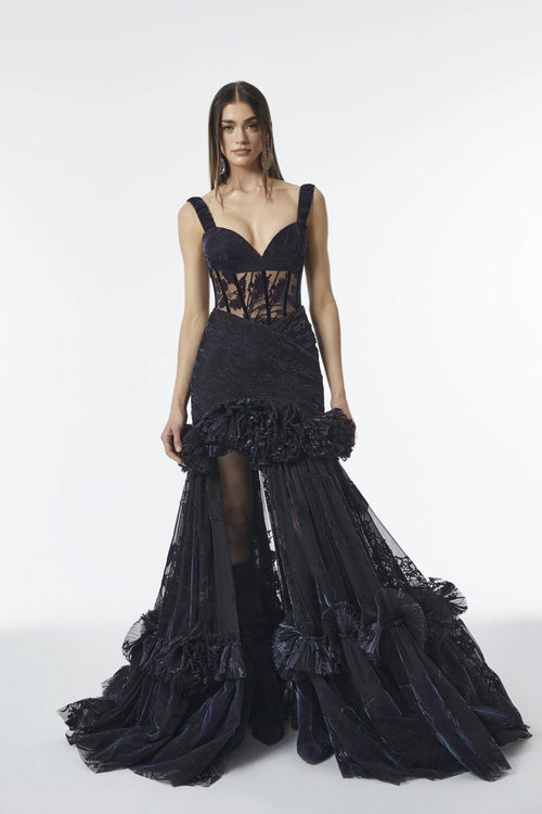 Fringe Effect Tulle Long Dress